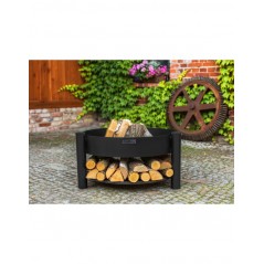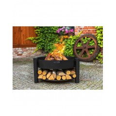 Die Feuerschale ist mit einem zusätzlichen Fach versehen, in dem wirklich viel Holz aufbewahrt werden kann.